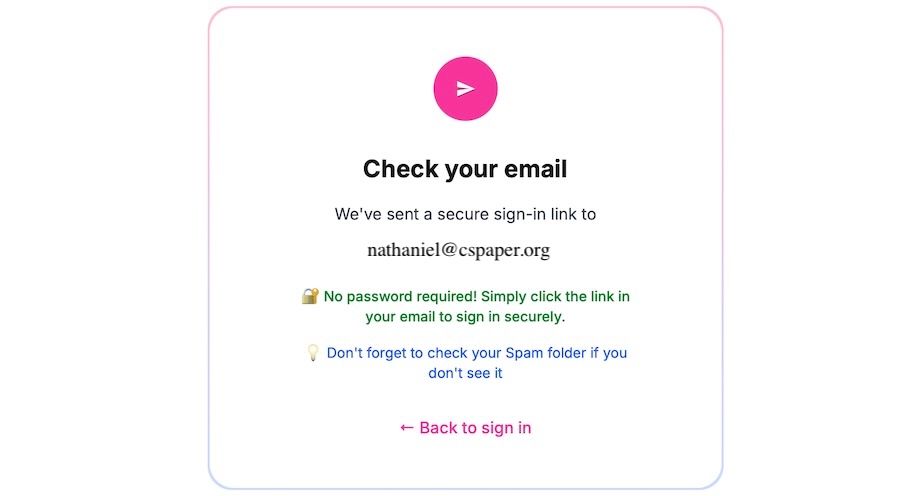 • Check your email inbox for a secure magic link.
